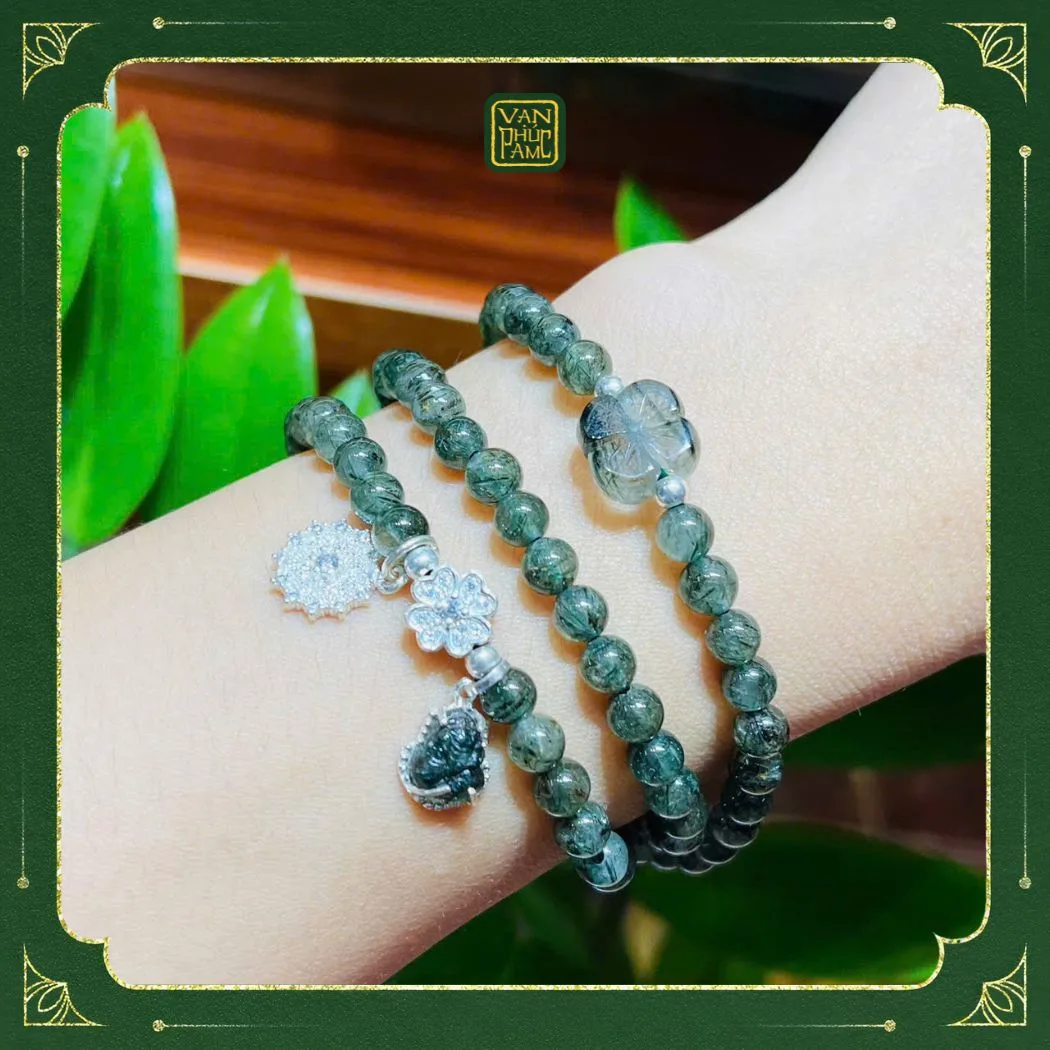 Vòng Thạch Anh Cỏ May Mắn & Charm Tỳ Hưu Bọc Bạc